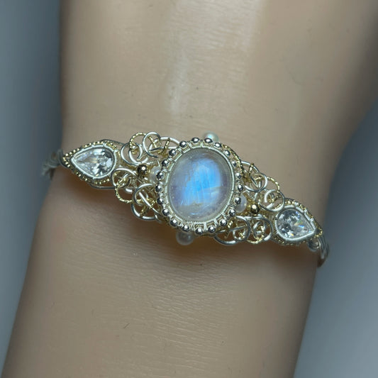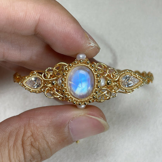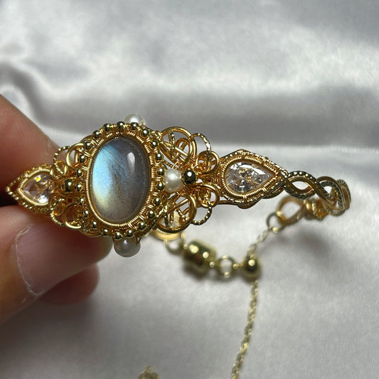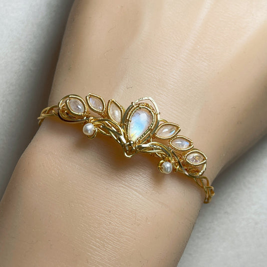 [Lotus] Handmade Moonstone Bracelet -Wire Wrapped Jewelry