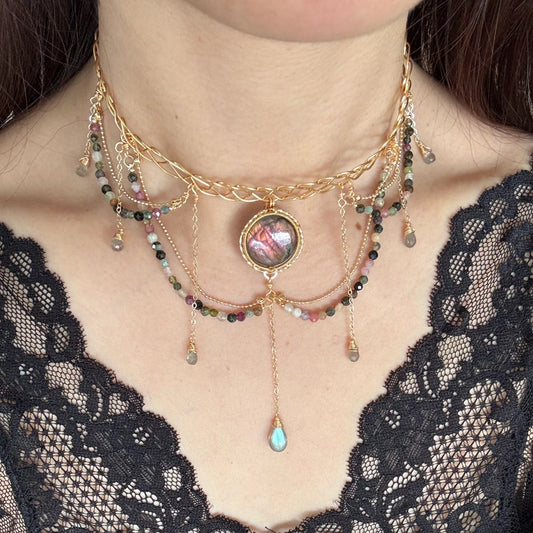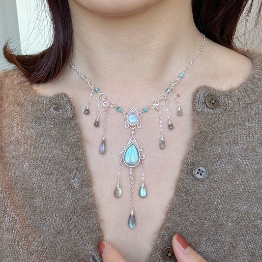 [Forest Daydreams] Handmade Labradorite Headpiece & Necklace - Wire Wrapped Jewelry