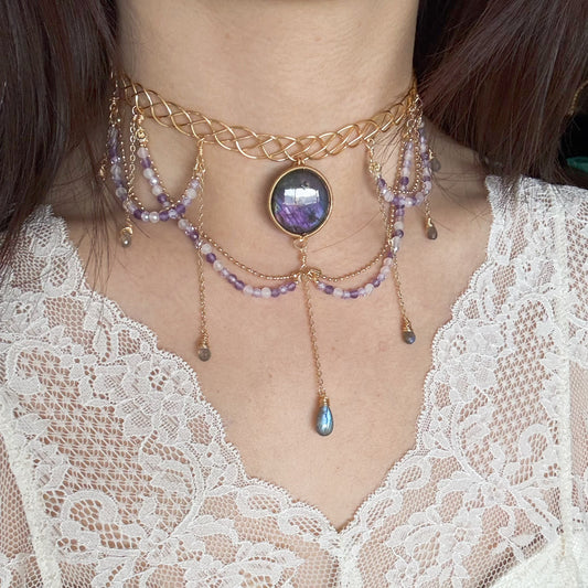 Handmade Purple Labradorite Choker - Wire Wrapped Jewelry