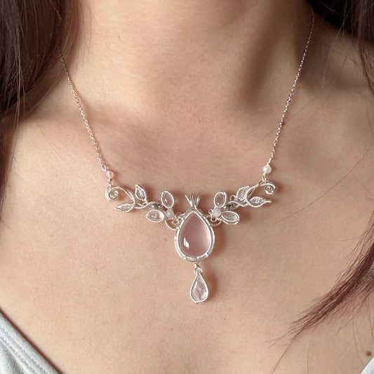 [Sakura] Handmade Rose Quartz Necklace - Wire Wrapped Jewelry