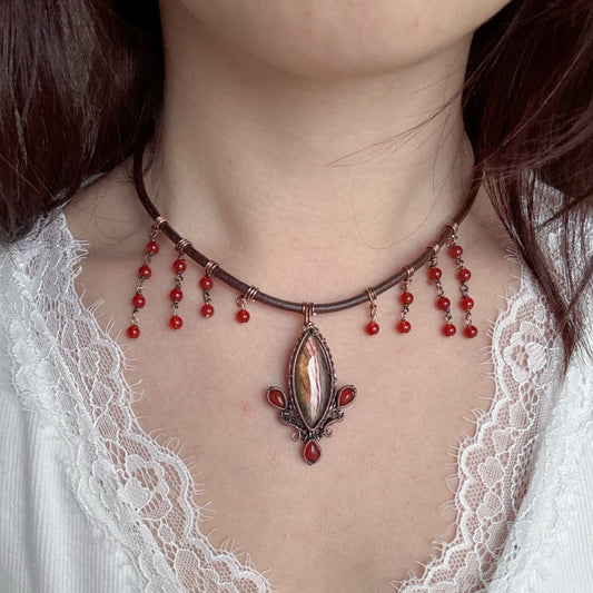 Handmade Red/Pink Labradorite Choker - Wire Wrapped Jewelry