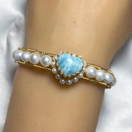 [Blue Heart] Handmade Larimar Bracelet - Wire Wrapped Jewelry