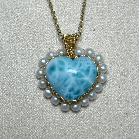 [Heart] Handmade Larimar Necklace - Wire Wrapped Necklace