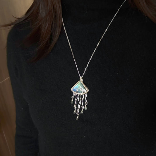 [Ocean and Jellyfish] Handmade Labradorite Necklace - Wire Wrapped Jewelry