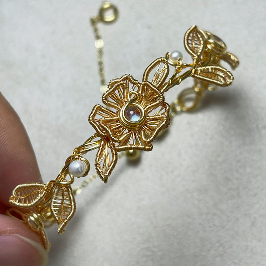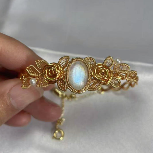 [Rose] Handmade Moonstone Bracelet - Wire Wrapped Jewelry