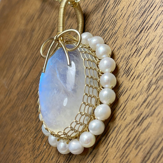 Handmade Moonstone Necklace - Wire Wrapped Jewelry