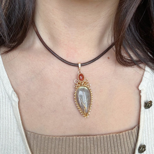 [Flame] Handmade Orange/Red Labradorite Necklace - Wire Wrapped Jewelry