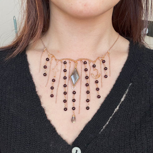 [Waterfall] Handmade Labradorite And Garnet Necklace - Wire Wrapped Jewelry