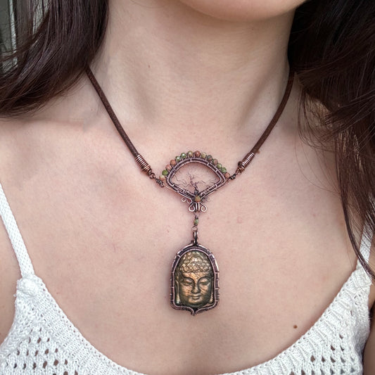 Handmade Gold Buddha Necklace - Wire Wrapped Jewelry