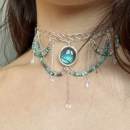 Handmade Green Labradorite Choker And Headpiece - Wire Wrapped Jewelry
