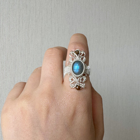 Handmade Blue Labradorite Ring (Open End Adjustment) - Wire Wrapped Jewelry