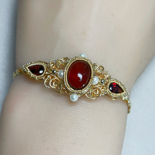 Handmade Garnet Bracelet - Wire Wrapped Jewelry