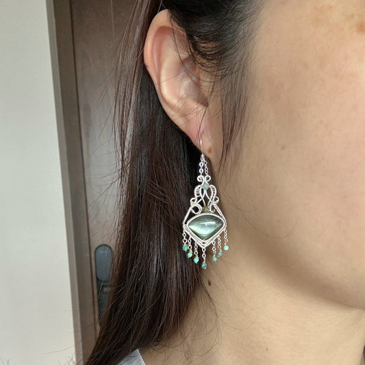 Handmade Green Labradorite Earrings - Wire Wrapped Jewelry