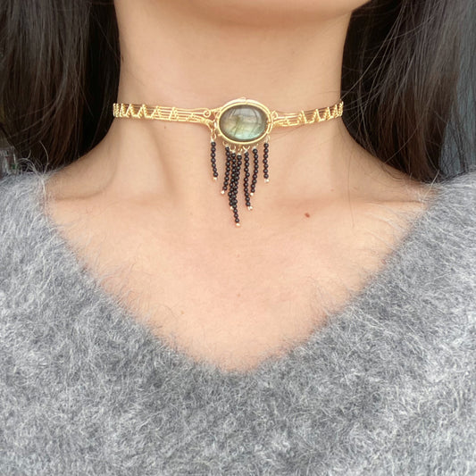 Handmade Blue Labradorite Choker - Wire Wrapped Jewelry