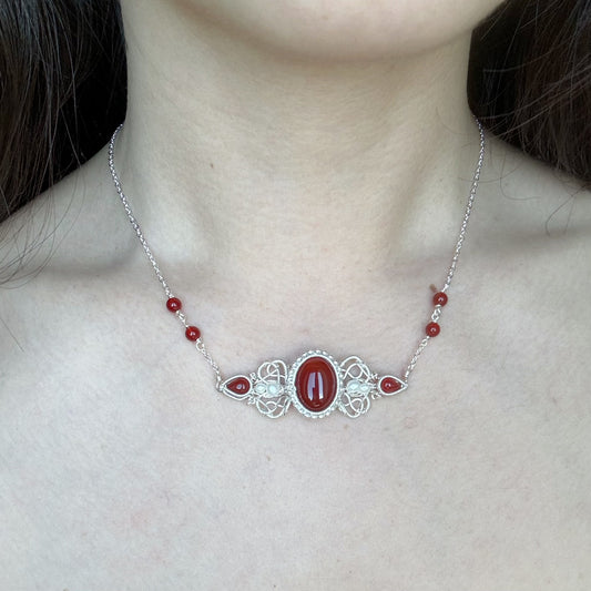 Handmade Red Agate Necklace - Wire Wrapped Jewelry