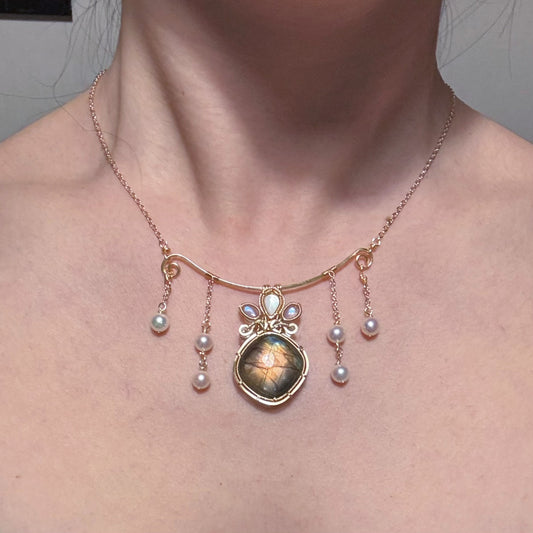 Handmade Orange Labradorite Necklace - Wire Wrapped Jewelry