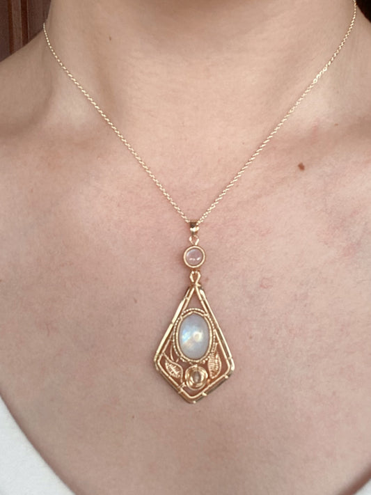 Handmade Rose And Moonstone Necklace - Wire Wrapped Jewelry