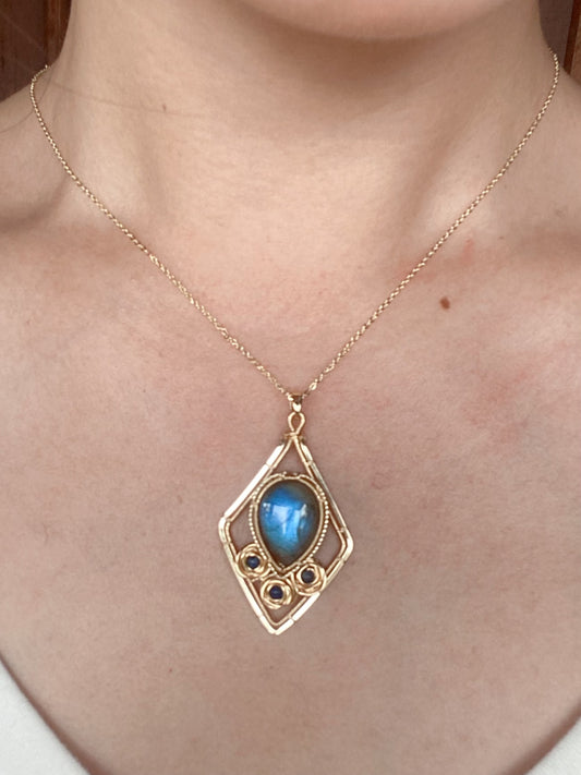 Handmade Rose And Blue Labradorite Necklace - Wire Wrapped Jewelry