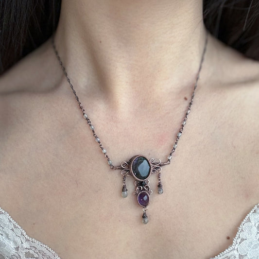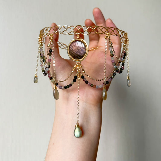 Handmade Purple Labradorite Headpiece And Necklace - Wire Wrapped Jewelry
