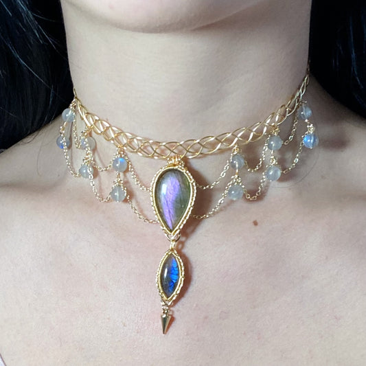 Handmade Purple Labradorite Choker - Wire Wrapped Jewelry