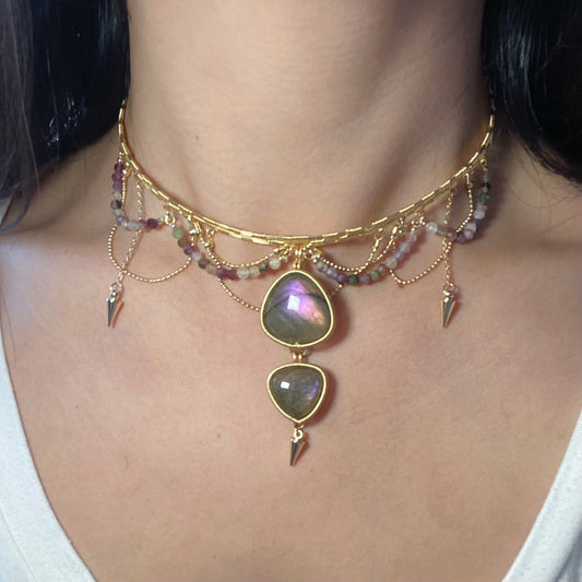 Handmade Purple/Pink Labradorite Choker - Wire Wrapped Jewelry