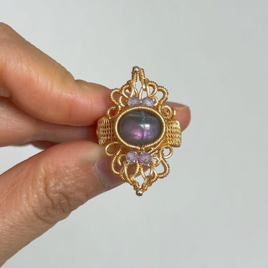 Handmade Purple Labradorite Ring (Open End Adjustment) - Wire Wrapped Jewelry