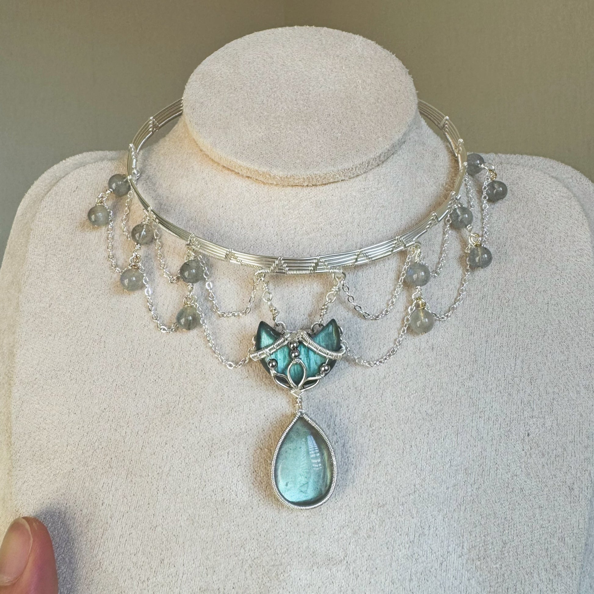 Handmade Labradorite Choker - Wire Wrapped Jewelry